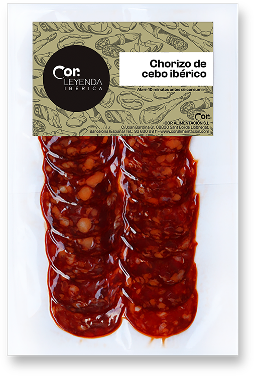 Carne de cerdo ibérico, sal común, pimentón, leche en polvo, humectante (E-420i), dextrina, dextrosa, correctores de la acidez (E-325, E-575, E-331iii), especias, proteína de soja, extracto vegetal, antioxidantes (E-301, E-392), proteína de leche, emulgentes (E-450i, E-452i, E-451i), conservadores (E-252, E- 250).
