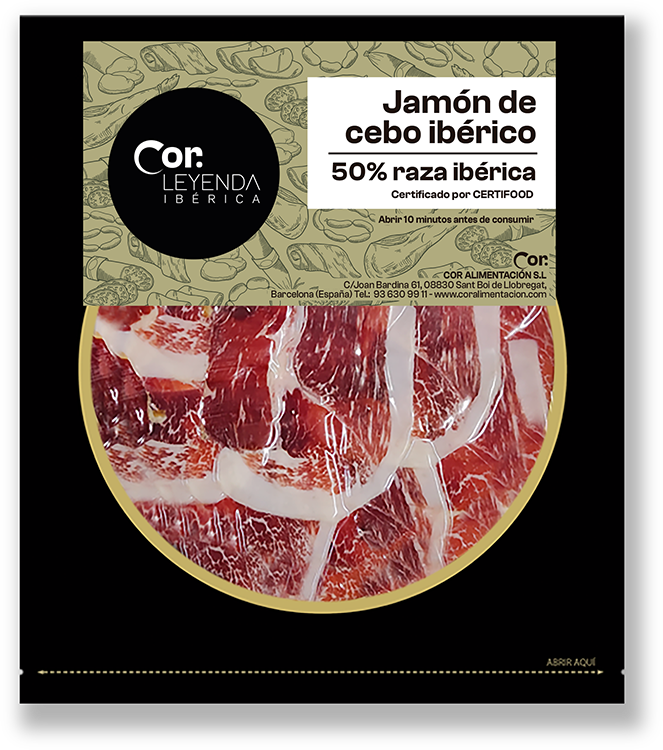 Jamón ibérico de cebo, sal, azúcares, corrector de acidez (E-331iii), conservadores (E-250 y E-252) y antioxidante (E-301).