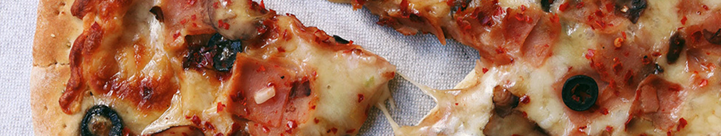 Jamón cocido, mozzarella, olivas y champiñones