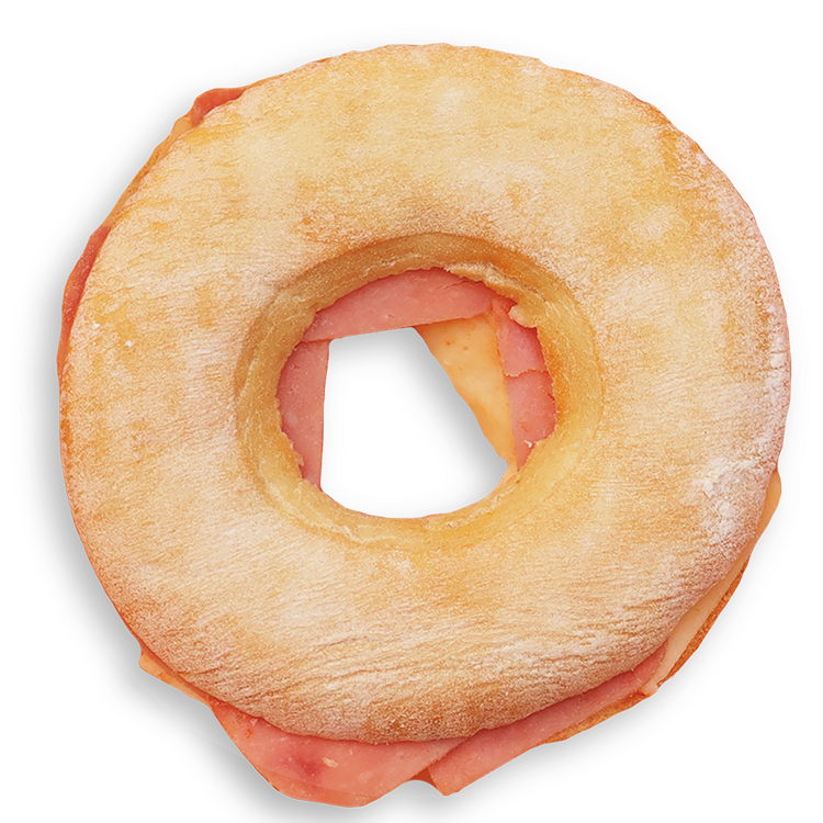 Pan precocido redondo y crujiente relleno de jamón cocido y queso