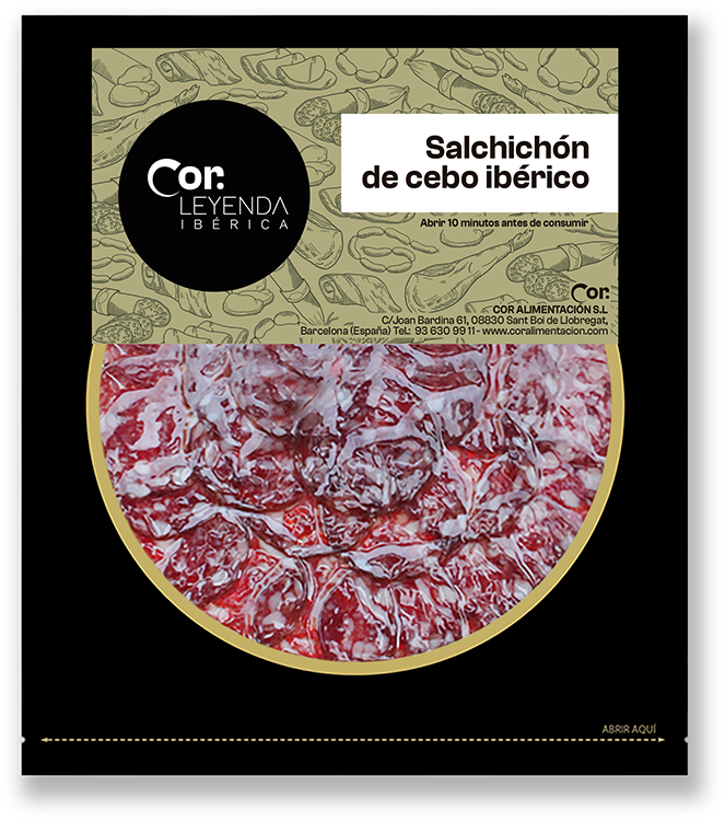 Carne de cerdo ibérico, leche y proteínas de la leche, sal, humectante (E-420i), dextrina, dextrosa, especias, proteína de soja, correctores de la acidez (E-575, E-331), aroma, extracto vegetal, emulgentes (E-450i, E-452i, E-451i), antioxidantes (E-301, E-392) y conservadores (E-252, E-250).