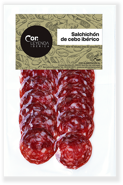 Carne de cerdo ibérico, leche y proteínas de la leche, sal, humectante (E-420i), dextrina, dextrosa, especias, proteína de soja, correctores de la acidez (E-575, E-331), aroma, extracto vegetal, emulgentes (E-450i, E-452i, E-451i), antioxidantes (E-301, E- 392) y conservadores (E-252, E-250).